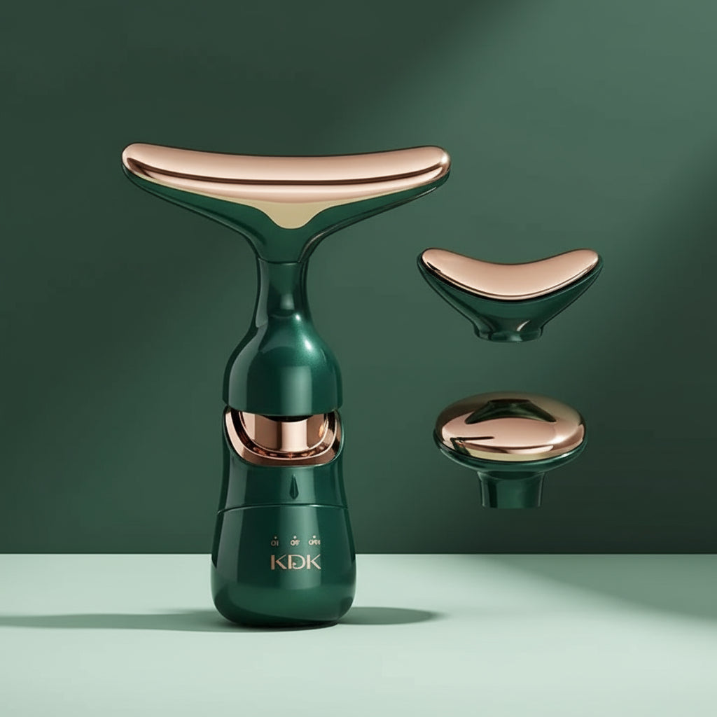 🌸 Masajeador 3 en 1: Relaja y reafirma tu piel con cabezales diseñados para cada zona del rostro.